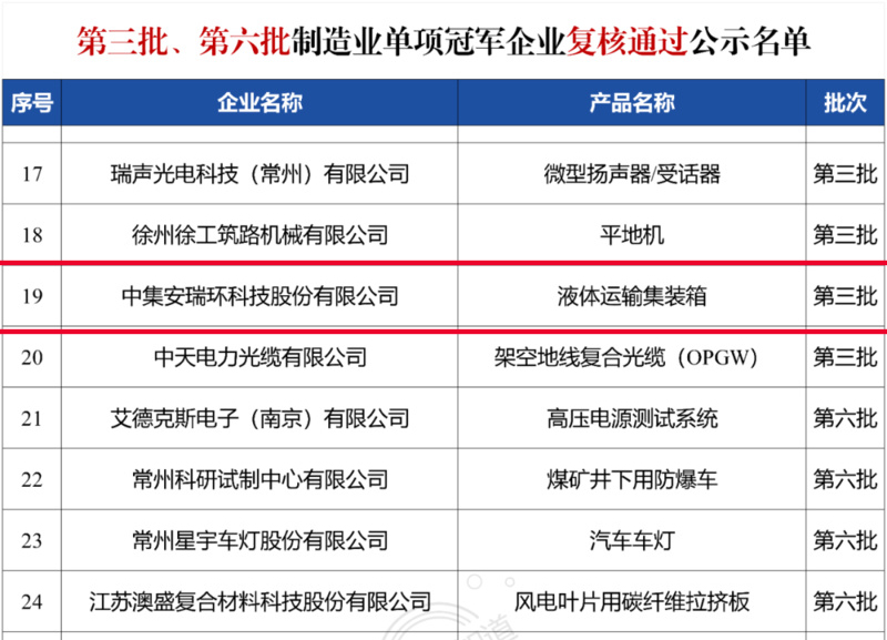 克日,,,,,江苏省工信厅公示第九批国家级制造业单项冠军企业及第三批、第六批复核通过名单,,,,,尊龙凯时人生就是搏(简称 “尊龙凯时人生就是搏”)依附在液体罐式集装箱领域的一连领跑优势,,,,,乐成通过复核,,,,,再次连任 “制造业单项冠军树模企业” 称呼。。。。这一效果不但是对企业恒久专注细分市场的肯定,,,,,更印证了其在手艺立异、市场竞争力等焦点维度的行业标杆职位。。。。?