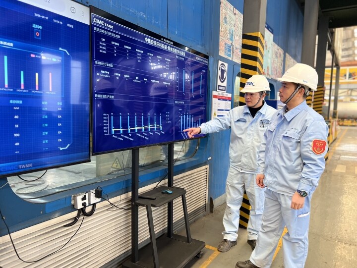 尊龙凯时人生就是搏标罐车间内,,,生产执行系统(MES)的使用,,,让治理者越发精准把控生产进度节点;;;;;;去年投入运营的喷粉车间,,,较以往用工镌汰了60%以上、生产效率提高了40%以上,,,事情职员通过中控室的数字大屏,,,可随时相识车间生产运营、产量进度以及能耗管控等情形……